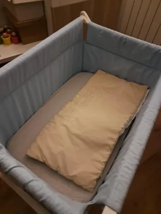 Cuna de colecho -con diferentes niveles -con barrera para bajarla y subirla. -con mosquitero -con ruedas y frenos Tiene hasta los plásticos puestos de compra 25€ si quereis cochon comprado en amazon aloevera todo por 35€