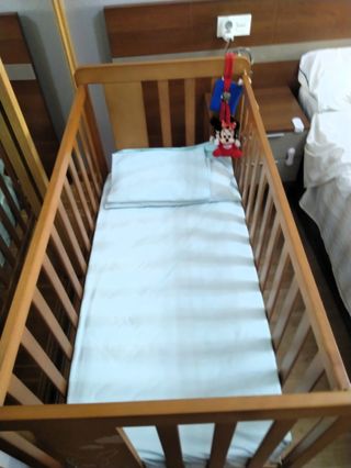 Cuna de madera con colchón