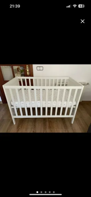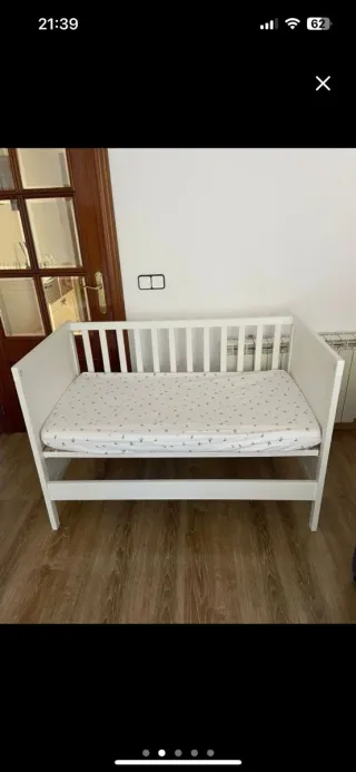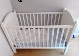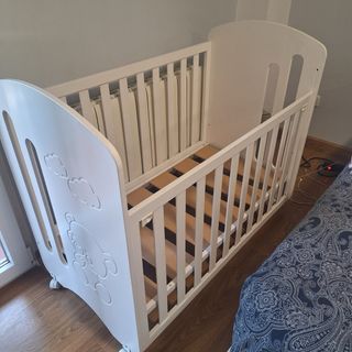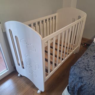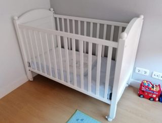 Cuna de bebé en perfecto estado, utilizada muy poco. - Estructura de madera blanca. - Incluye colchón con funda. - Diseño clásico y seguro.