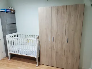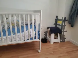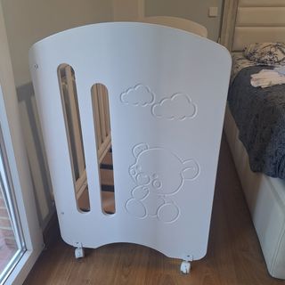 Cuna de bebé de madera, ideal para el descanso del recién nacido. Su diseño clásico se adapta a cualquier habitación la use un mes se hizo un apaño se puede poner como cuna colecho pusimos unas escuadras y una barra inferior para mallor sujeción) o normal dos alturas. Se entrega con dos colchones el normal y otro cunade viaje se regala protector de la Cuna esta sin usar - Fabricada en madera natural. - Barreras de seguridad. - Colchón incluido.