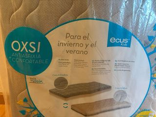 Colchón para cuna de la marca Ecus, modelo Oxsi, con medidas de 120x60 cm. Diseñado para ofrecer confort y seguridad. - Tejido transpirable. - Tratamiento antiácaros. - Reversible para invierno y verano. Apenas usado, guardado en casa. PVP 85€
