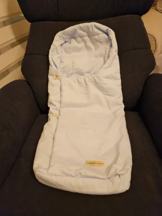 Precioso saco sin estrenar de la marca La Girafa blanca, ideal para cuco, cuna o capazo. Su diseño es muy tierno y funcional. - Color azul claro. - Cierre con botones. - Etiqueta de la marca visible.