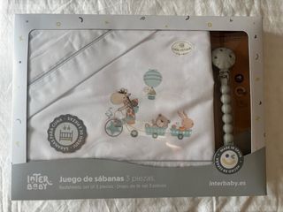 Conjunto de sábanas para cuna de la marca Interbaby, con un diseño infantil. - Incluye 3 piezas. - Composición: 100% Algodón. - Fabricado en España.