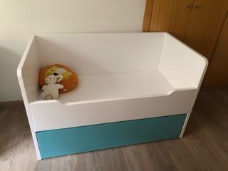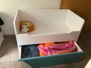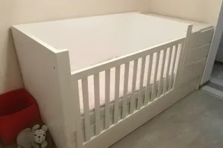 Cuna evolutiva de la marca Alondra, en color blanco. Se adapta al crecimiento del bebé. - Diseño moderno y funcional. - Laterales de barrotes para mayor seguridad. - Incluye cajones integrados para almacenamiento. - Incluye cama bajera de 90*190 -El colchón de la cuna se regala Precio negociable