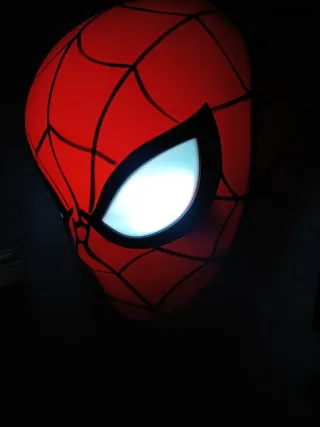 Esta lámpara tiene el diseño icónico de la máscara de Spiderman. Es un elemento decorativo llamativo. - Diseño de máscara de Spiderman. - Iluminación brillante en los ojos.