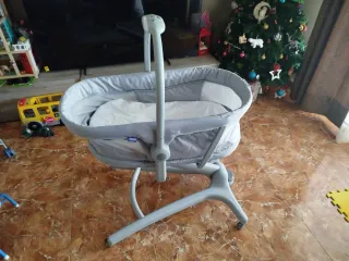 Cuna versátil Chicco en color gris, ideal para los primeros meses del bebé. - Estructura metálica. - Tejido suave y acolchado. - Incluye capota con juguetes. - Sistema de arnés de seguridad. Incluye colchon Chicco para la cuna. (Valorado en 30€) Precio original sin colchon 279,99€