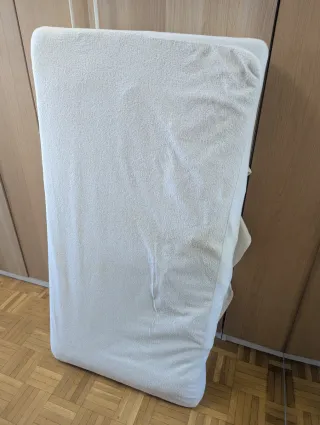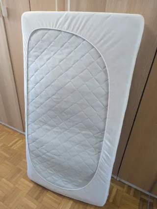 Colchón para cuna en buen estado, con muy poco uso. - Diseño acolchado. - Funda protectora incluida. - Protector impermeable incluido también. - Medidas 117x57 cm.