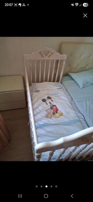 Se vende cuna blanca en buen estado, ideal para el descanso del bebé. Incluye colchón, chichonera y funda nórdica. - Cuna de color blanco. - Incluye colchón +protector - Incluye chichonera +peluches - Incluye funda nórdica.