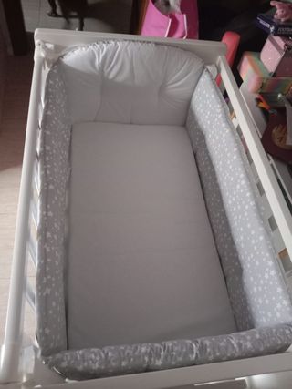 Cuna blanca + colchón + chichonera