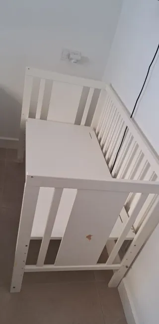 Cuna de bebé lista para usar. Incluye un colchón . - Se puede subir y bajar el colchón según la edad - Color blanco. - Apto para cunas de bebé - Se reglan algunos accesorios aparte