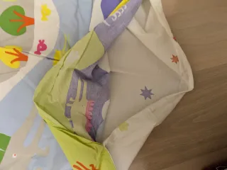 Cuna de viaje travel cot OLMITOS con un diseño infantil y colorido, ideal para los más pequeños. - Cuenta con malas laterales. - Estructura de metal y tela. - Ligero y en su caja original. - De colores. Dibujos de animales en los laterales. - Regalo colchón. - Con su caja original. ¡No ocupa!