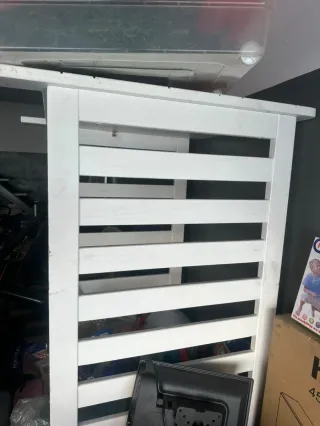 Cuna de bebé en buen estado, lista para su nuevo hogar. Incluye colchón y protector acolchado. Esta como tal la foto - Estructura de madera blanca. - Laterales de barrotes. - Incluye colchón. Todo lo que se ve en la foto