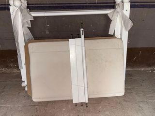 Cuna de bebé en color blanco, con un diseño clásico y seguro. Es cuna y se convierte en cama.Se vende en asturias en pola de siero - Barrera de seguridad. - Incluye colchon de espuma y sabana bajera.