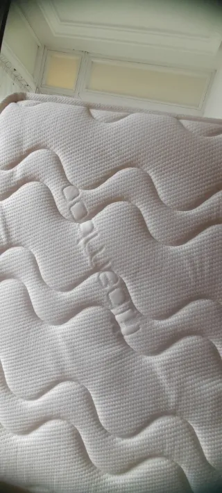 Colchon muy poco uso esta nuevo de casa de los abuelos Colchón para cuna de viaje con un diseño acolchado. - Tejido blanco con patrón ondulado. - Acolchado suave