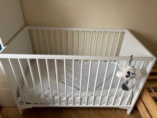Se vende cuna modelo SUNDVIK de IKEA en color blanco. Ha tenido poco uso y se encuentra en buen estado general, con algún roce leve. - Estructura de madera. - Diseño clásico y funcional.
