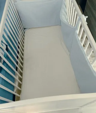 Protector de cuna Dreamzie, diseñado para ofrecer una barrera impermeable y silenciosa. No tiene ningún tipo de mancha. - Tejido impermeable. - Tejido silencioso. * En mi perfil hay cosas para embarazo, lactancia, bebé. * Opciones de entrega: envío o en persona (Estación del tren en Valdemoro)