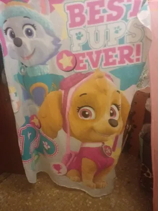Mantita suave con diseño de Paw Patrol, ideal para cuna o cama pequeña. Medidas: - Personajes: Skye y Everest. - Diseño: Best Pups Ever!.