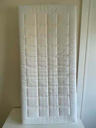 Colchón para cuna desenfundable con cremallera y con otra funda también extraíble con cremallera. - Medidas: 60x120 cm. - Desenfundable para facilitar su lavado. -Incluye funda impermeable Ikea Lenast.