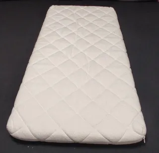 Colchón para cuna de bebé con medidas estándar de 120x60 cm. Marca Ecus Kids. Es el modelo Pigü, que tiene un relleno antiplagiocefalia y transpirable. Nuevo cuesta 190€. Puedes ver características buscando ese modelo en Google.