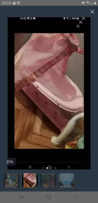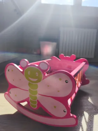 Cuna de juguete rosa con mariposas