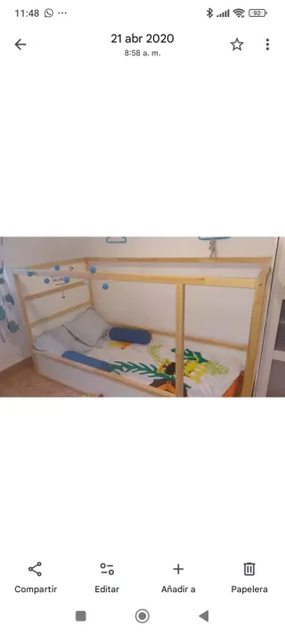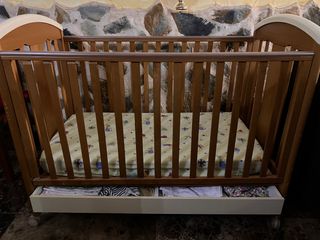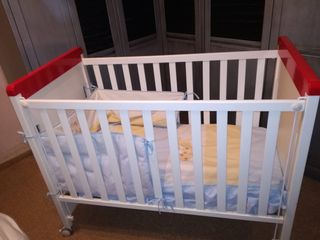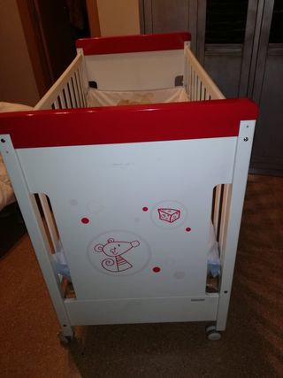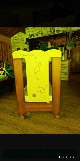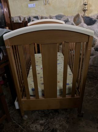 Como nueva, apenas usada, la tenia instalada en segunda vivienda. Madera maciza, varios niveles de altura, barandilla se baja para su comodidad, ruedas, muy bonita. Con chichoneras y edredón todo a juego con la cuna, muy bonito todo. Regalo colchón de muy buena calidad, con su funda lavable.