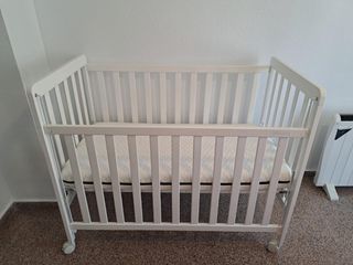 Minicuna de madera en buen estado, ideal para los primeros meses del bebé. Incluye colchón. - Estructura de madera. - Colchón incluido.