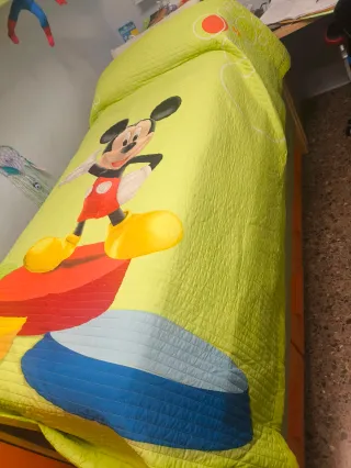 Colcha ligera con estampado de Mickey Mouse, ideal para entretiempo. - Diseño alegre y colorido. - Estampado de Mickey Mouse. - Acolchado fino.