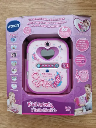 Diario electrónico Vtech KidiSecrets Selfie Music. En francés. - 7 en 1: lector de música, diario interactivo, cámara de fotos, juegos, etc. - Incluye más de 20 actividades y juegos. - Permite tomar más de 1000 fotos o selfies. - Edad recomendada: 6-12 años.
