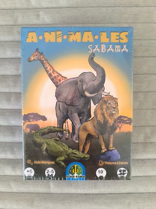 Juego de mesa Animales Sabana de Class Games. Pues eso es A-ni-ma-les Sabana, un juego de cartas donde los peques (y los mayores, que también se enganchan) se convierten en exploradores y fotógrafos de la sabana africana. Sobre la mesa, hay cartas con sílabas boca abajo y cartas de animales. Por turnos, cada jugador levanta una carta de sílaba y, si coincide con el nombre de un animal que quieras “fotografiar”, la guardas. ¡El primero que complete el nombre de un animal se lleva la foto! - Ilustraciones de Aida Márquez y Paloma Liranzo. - Apto para mayores de 6 años. - Para 2-5 jugadores. - Duración aproximada de 10 minutos.
