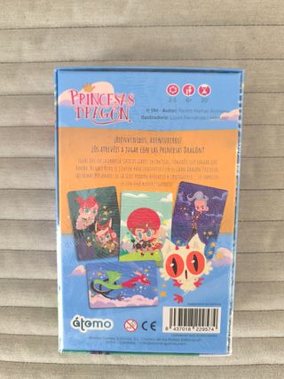 Juego de cartas Princesas Dragón de Átomo Games. SIN ABRIR Juego de mesa basado en la famosa serie de libros juveniles Princesas Dragón. Deberás juntar a Bamba, Nuna y Koko, y así ¡conseguir que se conviertan en Dragón! Y, por supuesto, contarás con la ayuda de tus personajes favoritos de la serie. - Ilustraciones coloridas y divertidas. - Diseñado por Juan Carlos Ruiz.