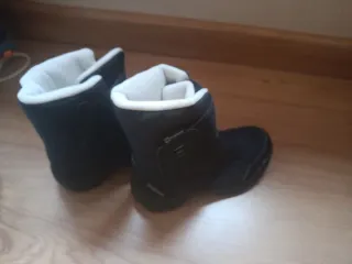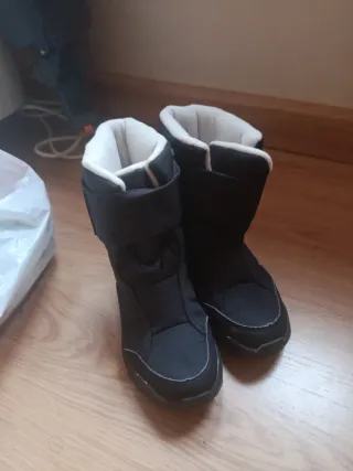 Botas de nieve negras para niños, ideales para mantener los pies calientes y secos en climas fríos. - Cierre de velcro. - Interior forrado de borreguito. - Suela de goma antideslizante.