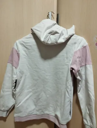 Sudadera con capucha para chica, con un diseño moderno y juvenil. - Color blanco y rosa. - Detalle de texto AMAZING bordado. - Con bolsillos. - Capucha con forro interior de malla rosa.