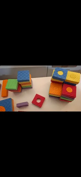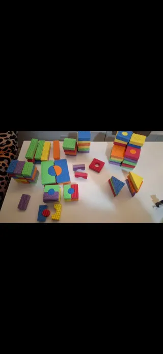 Conjunto de bloques de gomaespuma de varios colores. - Piezas de diferentes formas y tamaños. - Material suave y seguro para niños. - Ideal para construir y jugar.