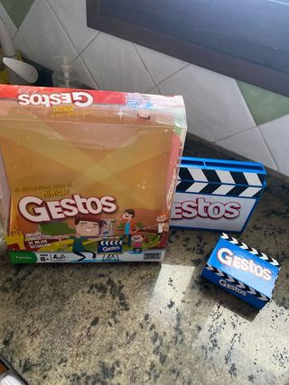 Juego de mesa Gestos, ideal para toda la familia. ¡Un divertido juego de mímica! - Incluye trofeo de mejor actuación. - Edad recomendada: 8+ años. - Para 4 o más jugadores.