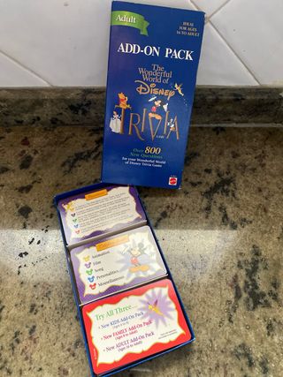 Expande tu juego de mesa The Wonderful World of Disney Trivia Game con este paquete adicional. - Contiene más de 800 nuevas preguntas. - Diseñado para mayores de 16 años. - Idioma: Inglés. - Marca: Mattel.