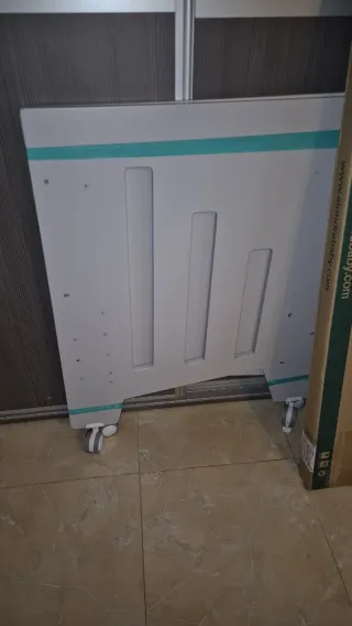 Cuna convertible Alondra Omni, modelo 5 en 1. Su diseño se adapta a las diferentes etapas de crecimiento del bebé. - Estructura de madera lacada en blanco. - Barrera con barrotes. - Base regulable en altura. Convertible en cuna, cuna colecho, escritorio, sofá o camita. Los frenos están rotos y la tabla para el colecho partida pero aún útil. Se regala colchón ecus con cuña adicional en perfecto estado, siempre usado con protector impermeable.