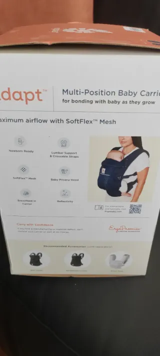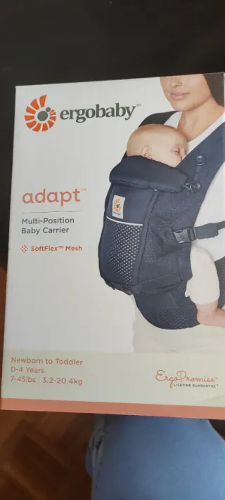 Mochila portabebés Ergobaby Adapt en color azul marino con tejido SoftFlex Mesh. - Apta desde recién nacido hasta los 4 años (0-4 años). - Soporta un peso de 7-45 lbs (3.2-20.4 kg). - En su caja original. - Diseño multi-posición. - Garantía de por vida Ergo Promise.