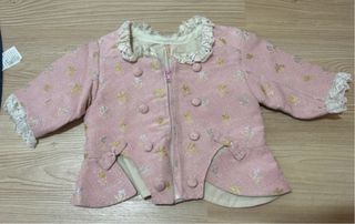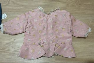 Corpiño de fallera para niña de 2 años. Precioso diseño con detalles florales. - Color rosa pálido. - Adornado con encaje en cuello y mangas. - Cierre de cremallera. - Detalle de lazos en los laterales.