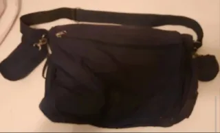 Práctica bolsa para carrito o silla de bebé. Diseñada para llevar todo lo necesario de forma organizada. - Color azul marino. - Compartimento frontal con solapa. - Detalle de ribete en contraste.