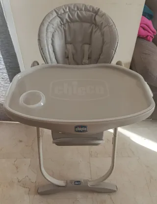 Trona Chicco Polly Magic en color gris, ideal para los primeros años del bebé. - Asiento acolchado y reductor extraíble. - Bandeja extraíble y ajustable. - Respaldo reclinable en varias posiciones. - Plegable para un fácil almacenamiento.