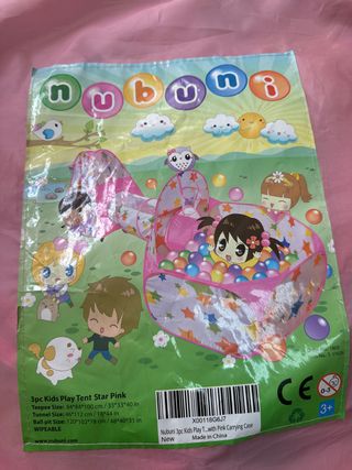 Divertido parque de juegos infantil de la marca Nubuni, con diseño de estrellas y túnel. - Incluye carpa, túnel y piscina de bolas. - Medidas carpa: 84x84x100 cm. - Medidas túnel: 46x112 cm. - Medidas piscina de bolas: 120x102x78 cm. - Fácil de limpiar.