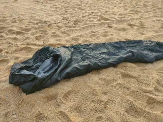Saco de dormir tipo momia, ideal para temperaturas de hasta -10 grados centígrados. - Diseño ergonómico para mayor comodidad. - Materiales de alta calidad para un buen aislamiento térmico. No tengo la funda original y hay un pequeño agujerito en la parte de los pies que habría que coser. Es muy pequeño y está en la parte de afuera así que no afecta en nada a la bolsa de dormir fíjense en la última foto.
