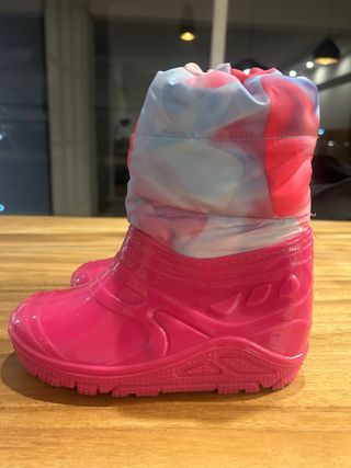 Botas de apres ski en color rosa, talla 28. Perfectas para mantener los pies calientes y secos en la nieve. - Parte inferior de goma. - Parte superior acolchada con cordón ajustable. - Diseño divertido y colorido.