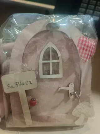 Encantadora puerta decorada para el Ratón Pérez. Ideal para añadir un toque mágico a la habitación. - Diseño con ventana y puerta. - Incluye cartel Sr. Pérez. - Adornos de mariquita y seta.