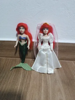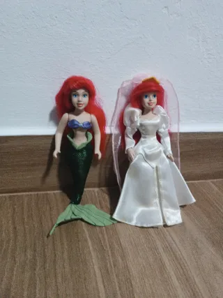 Dos muñecas antiguas Disney de La Sirenita, hechas de porcelana. Una representa a Ariel con su cola de sirena y la otra con su vestido de novia. - Muñeca Ariel con cola de sirena. - Muñeca Ariel con vestido de novia y velo. Muñecas Porcelana de Disney, de hace 20 años. Incluye Ariel la Sirenita y Ariel vestido de novia. Son muy antiguas, tienen algunas manchitas de antigüedad, pero se conservan muy bien. Más muñecas en mi perfil, si compra varias, haremos una oferta.