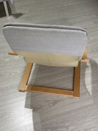 Sillón infantil con un diseño moderno y cómodo. - Tapicería de tela gris. - Estructura de madera curvada.