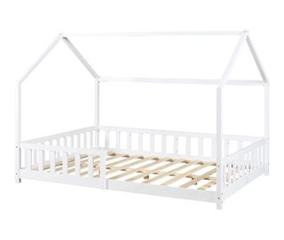 Cama infantil con diseño de casita, ideal para habitaciones de niños. - Medidas: 120x200 cm. - Color: Blanco. - Estructura de madera. - Colchón premium.