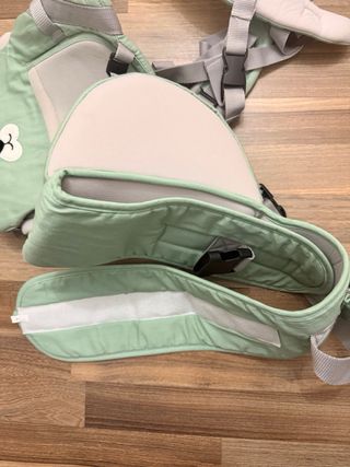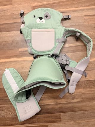 Portabebés con un adorable diseño de perrito en color menta. - Tejido suave y acolchado. - Correas ajustables para mayor comodidad. - Bolsillo frontal. - Diseño con cara de perro y orejas.