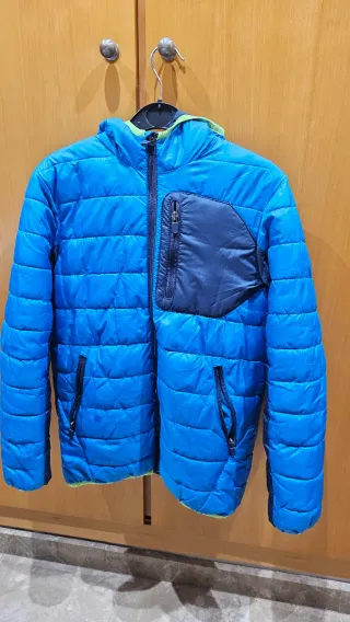 Chaqueta acolchada de color azul brillante, ideal para el entretiempo. Cuenta con capucha y varios bolsillos. - Cierre de cremallera frontal. - Bolsillo superior con cremallera. - Dos bolsillos inferiores con cremallera.