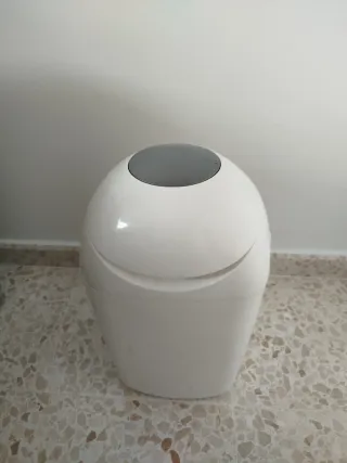 Contenedor de pañales de color blanco con tapa gris. Su diseño hermético ayuda a contener los olores. - Tapa gris. - Material plástico.